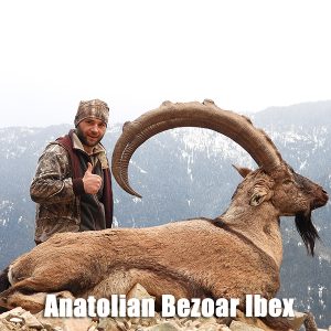 As the hunting symbol of Turkey, Bezoar Ibex live in the high grounds of the Kackar Mountains between 1000 – 2500 meters from the sea level. Natural structure of Kackar Mountains is rocky and it is cool. The weight of Bezoar Ibex is around 70 kg. It is known that Bezoar Ibex live nearly 15 years and the average trophy size is between 100 -140 centimeters. Also it is very possible to have trophies up to 145 cm. The hunting period is between August 1 to December 31 and January 1 to March 30.